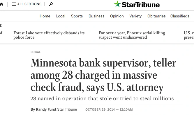 http://www.startribune.com/minn-bank-official-teller-among-28-charged-in-check-fraud-case/280683322/