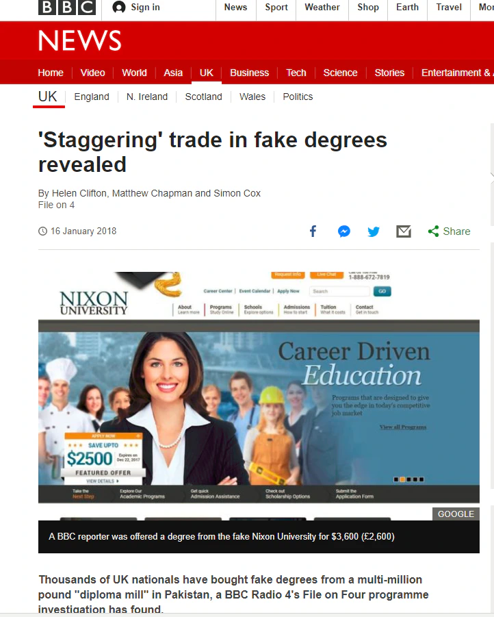 Earlier this year, another similar report from BBC news revealed thousands of fake degrees being bought by UK nationals from a ‘diploma mill’ operating out of Pakistan. According to the report, the buyers included NHS consultants and nurses as well. It also highlighted that a single buyer had spent £500,000 just on getting the bogus documents for the process.