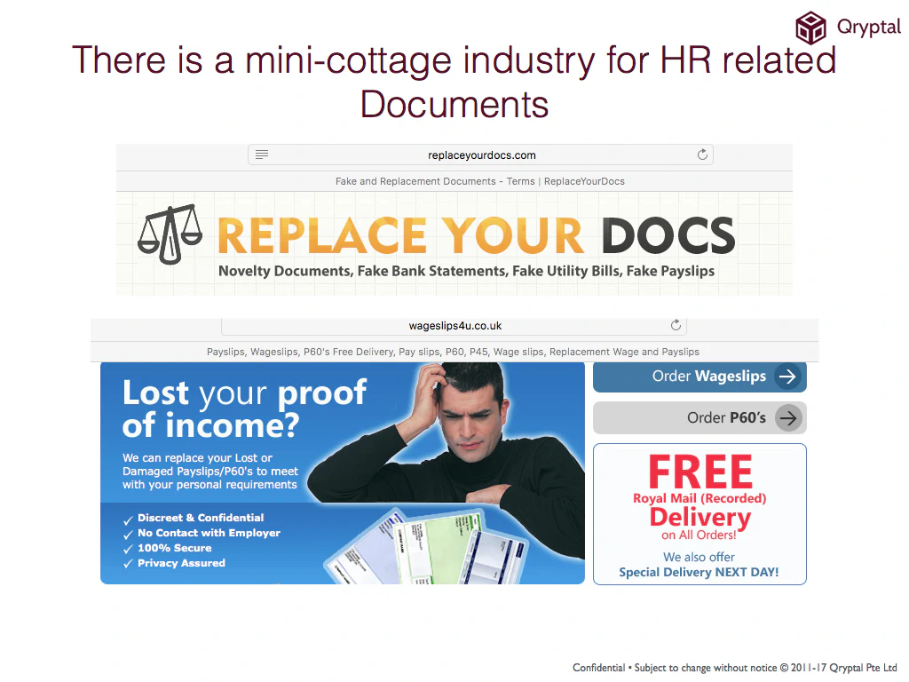 Once again a way to tackle this problem is by making sure that all such documents are system generated centrally and the information on them is captured in the form of a Qryptal secure QR code before it gets printed either physically or electronically. In addition the QR code will also have the digital signature of the issuing organisation so that unauthorized modifications can be identified and stopped. This can be then validated by different stakeholders to whom it is presented (other employers, banks, embassies and visa processing service providers etc) and the verified contents can be used for the purpose required with full confidence.